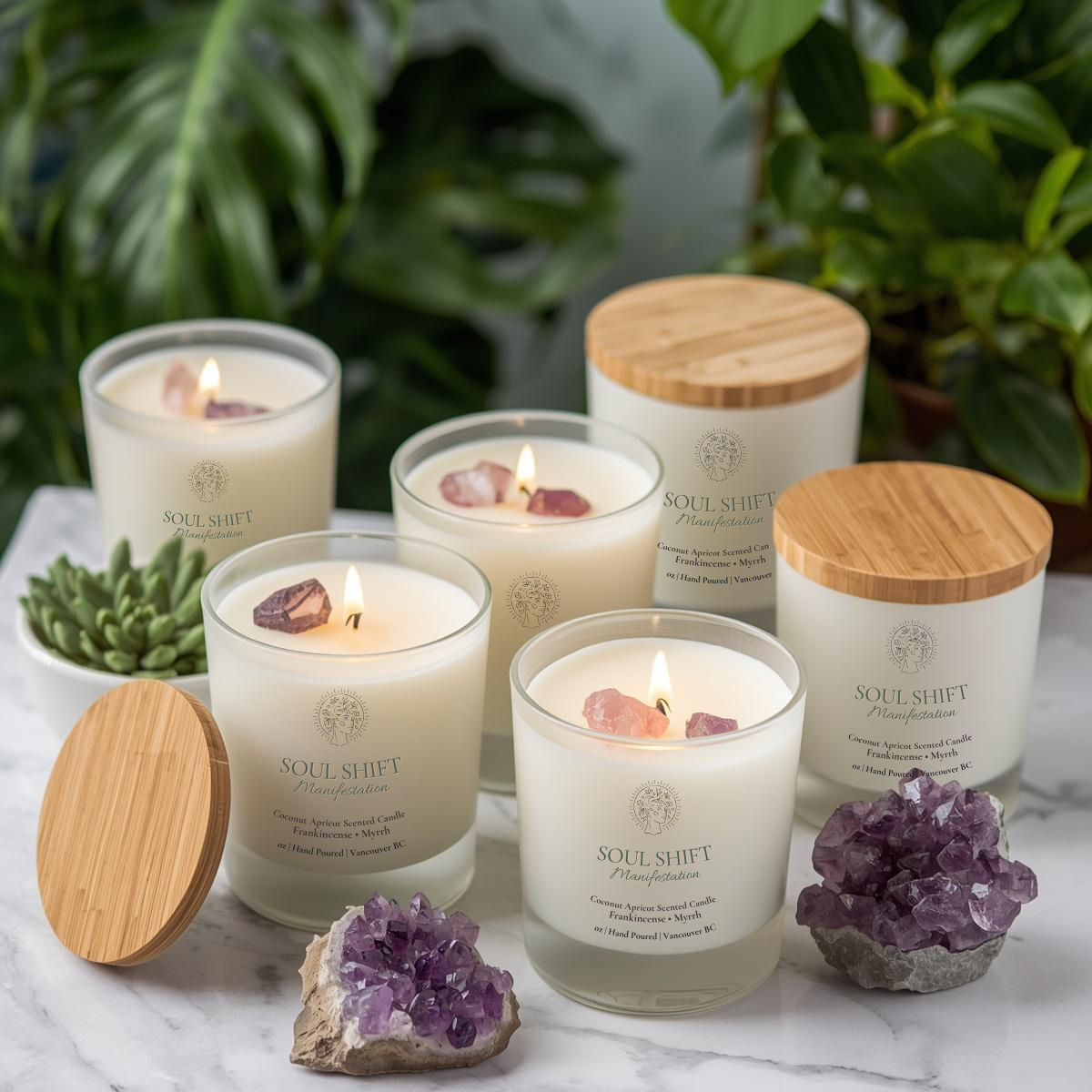Each Soul Shift candle is hand-poured with coconut apricot wax for a clean, even burn. Infused with premium fragrance oils, our candles are designed to create an atmosphere of warmth, presence, and intentional calm.